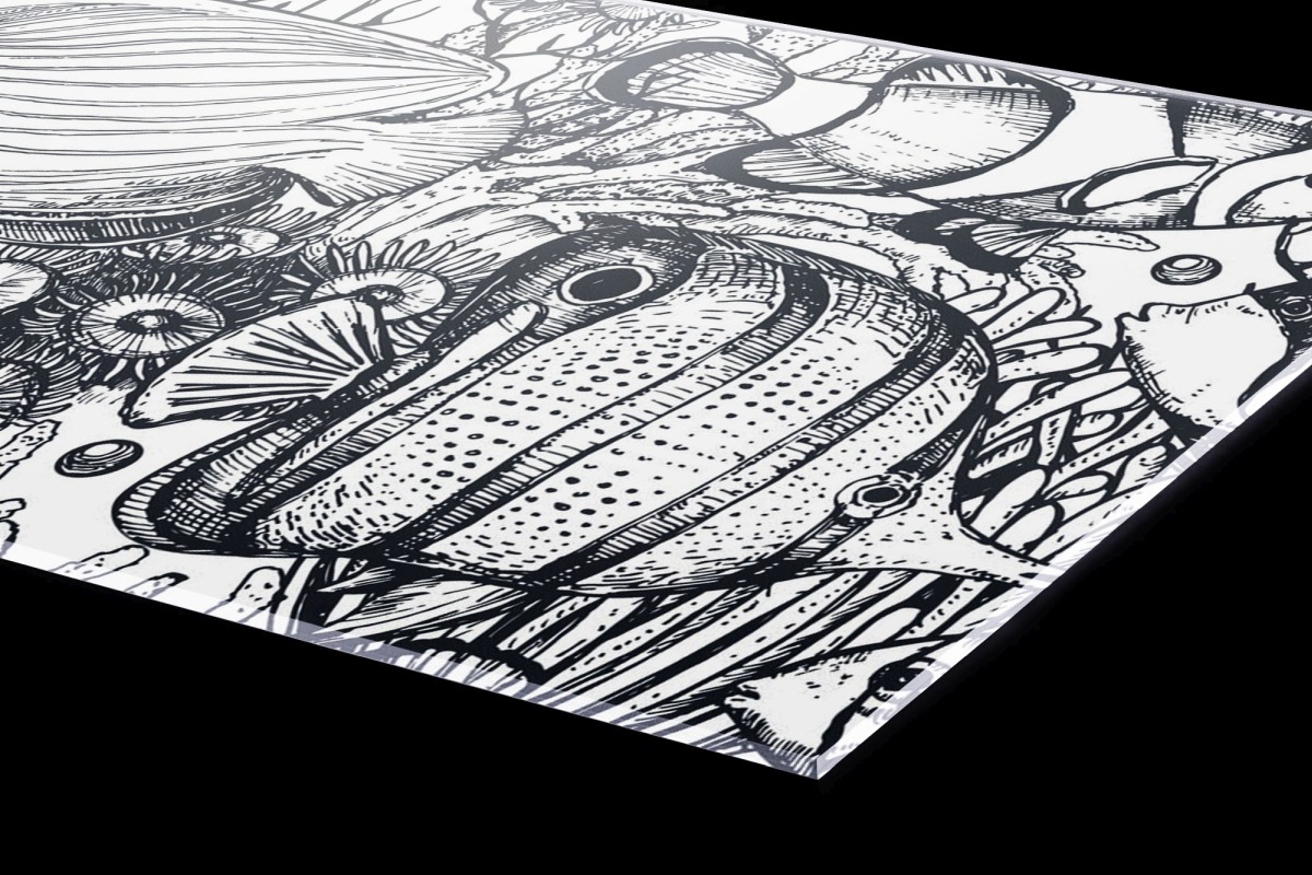 Plexi a konyhapult mögött Fekete-fehér hal - 240 x 60 cm