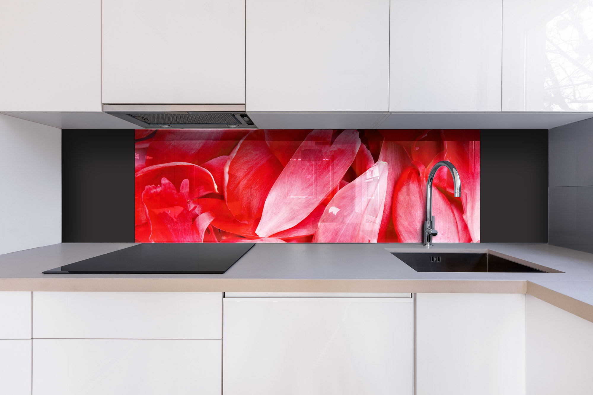 Plexi a konyhapult mögött Piros szirmok - 180 x 60 cm