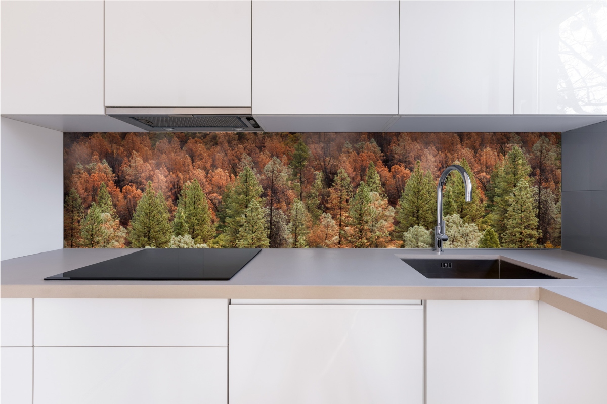Plexi a konyhapult mögött Színes fenyőliget - 240 x 60 cm