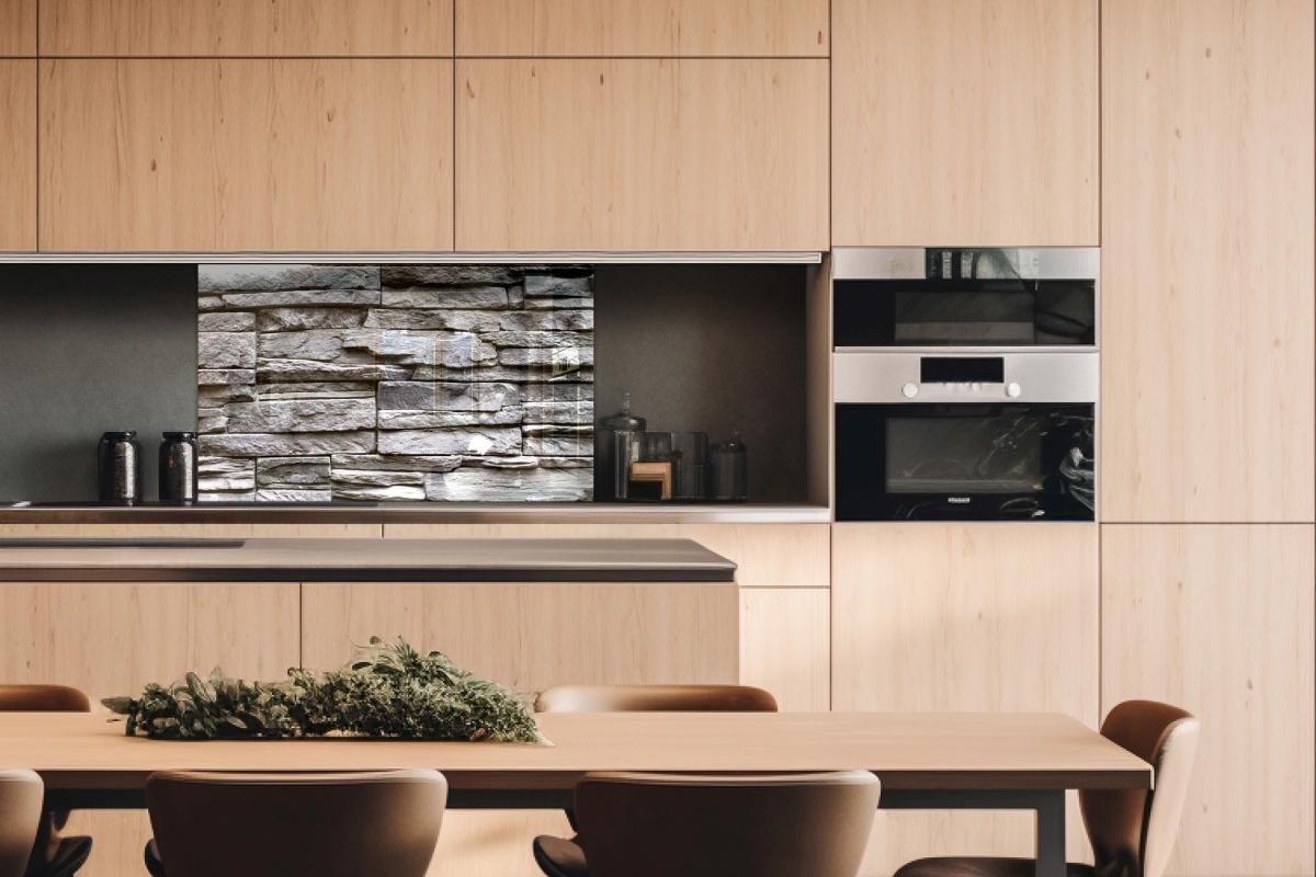 Plexi a konyhapult mögött Szürke kőfal - 100 x 60 cm
