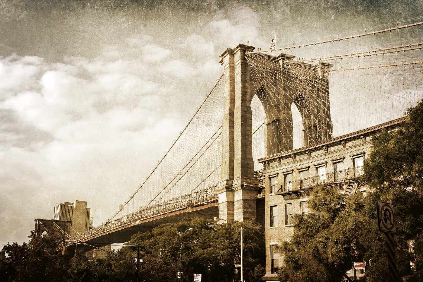 MS-5-3004 Nem szőtt fotótapéta Brooklyn Bridge vintage - 375 x 250 cm