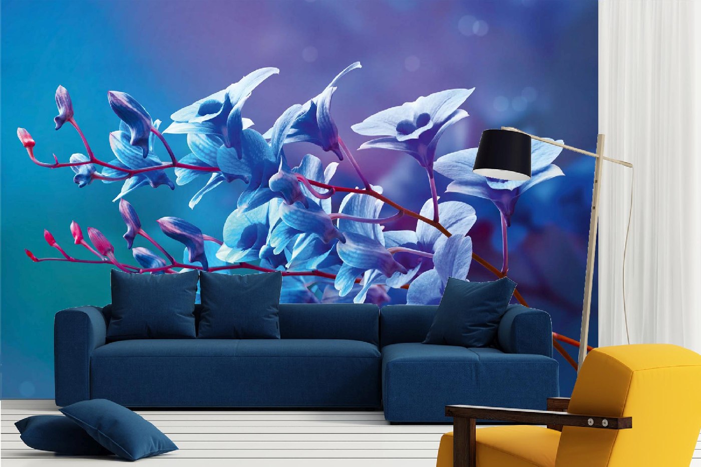 MS-5-1312 Nem szőtt fotótapéta Kék orchideák - 375 x 250 cm