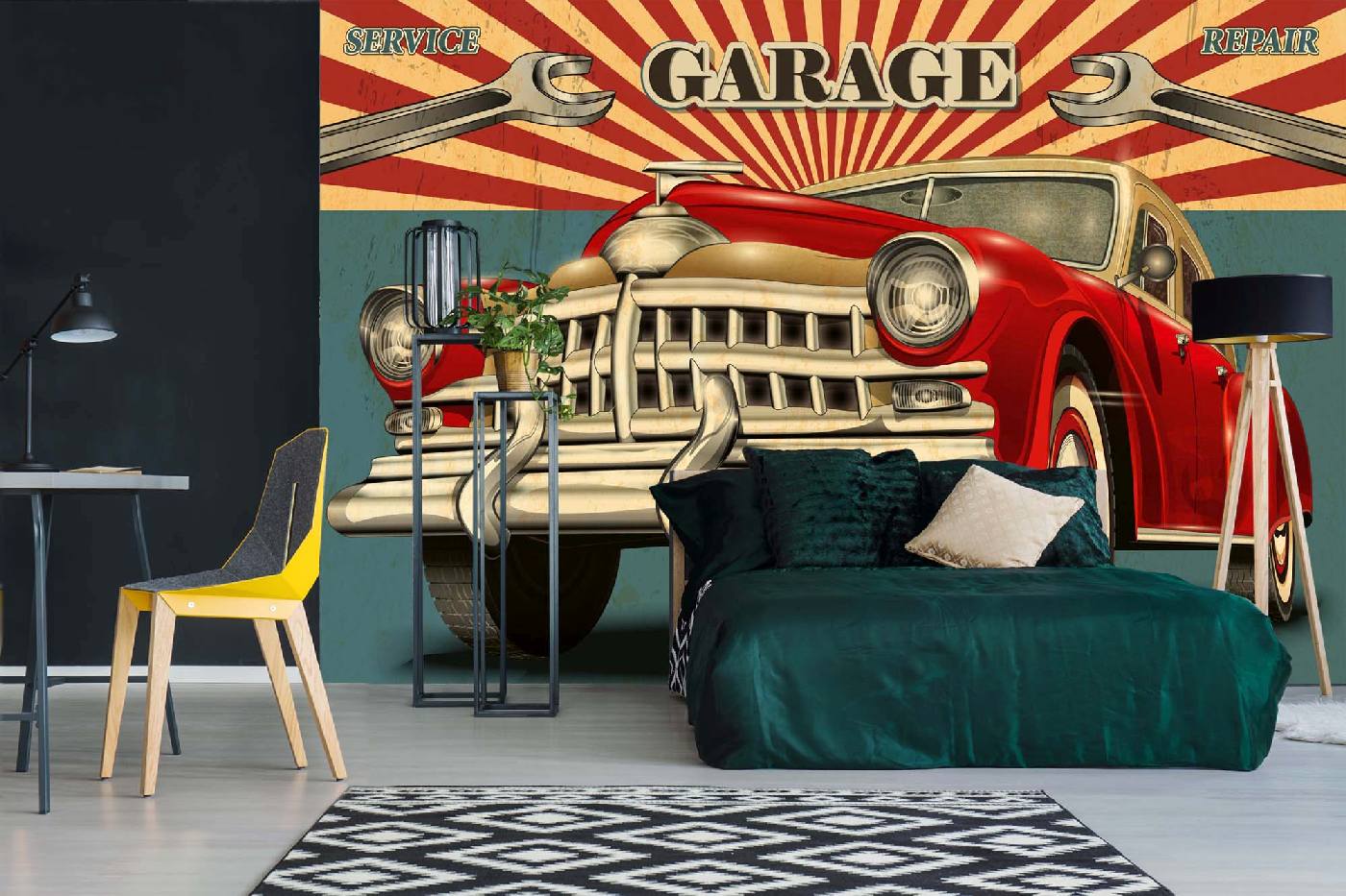 MS-5-2152 Nem szőtt fotótapéta Retro plakátgarázs - 375 x 250 cm