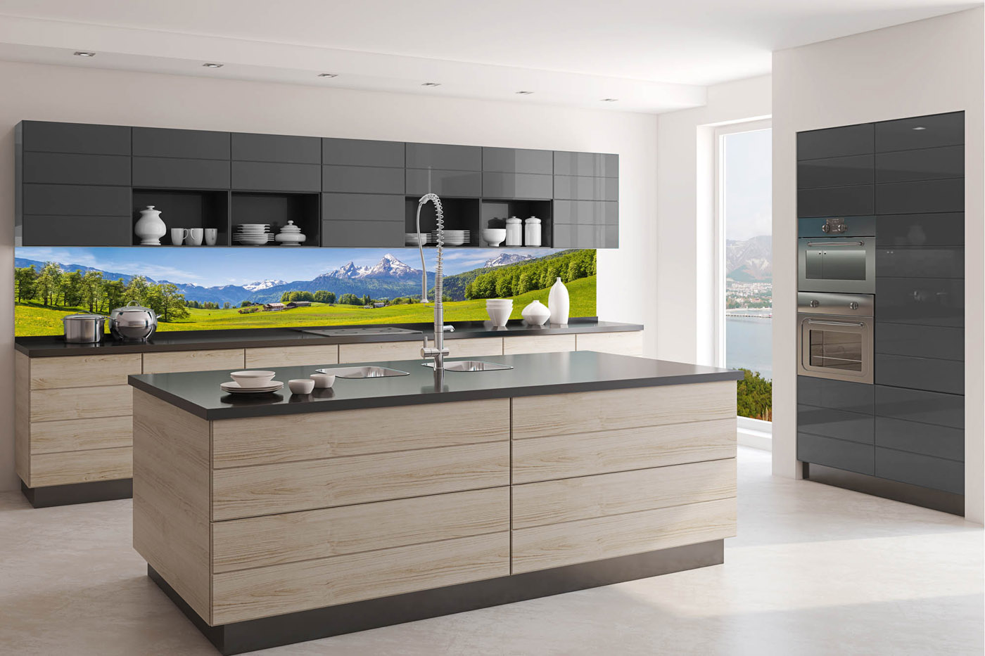 Konyhai fotótapéta - Alpesi kilátás 350 x 60 cm