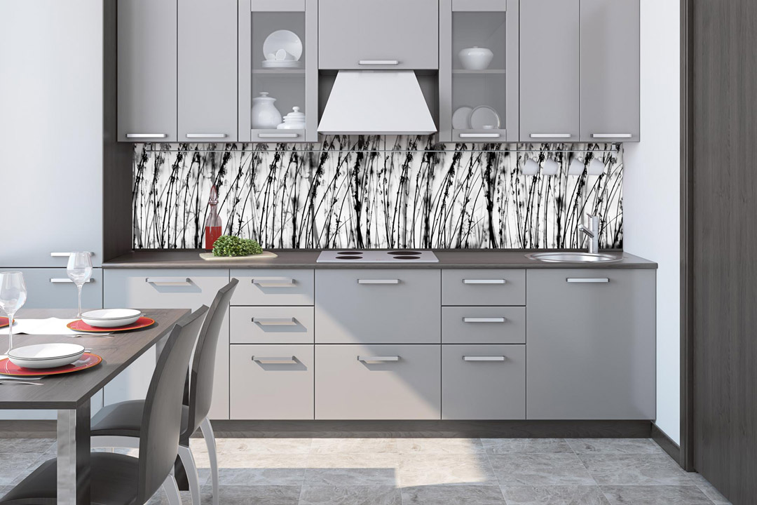 Konyhai fotótapéta - Fekete-fehér fű 260 x 60 cm