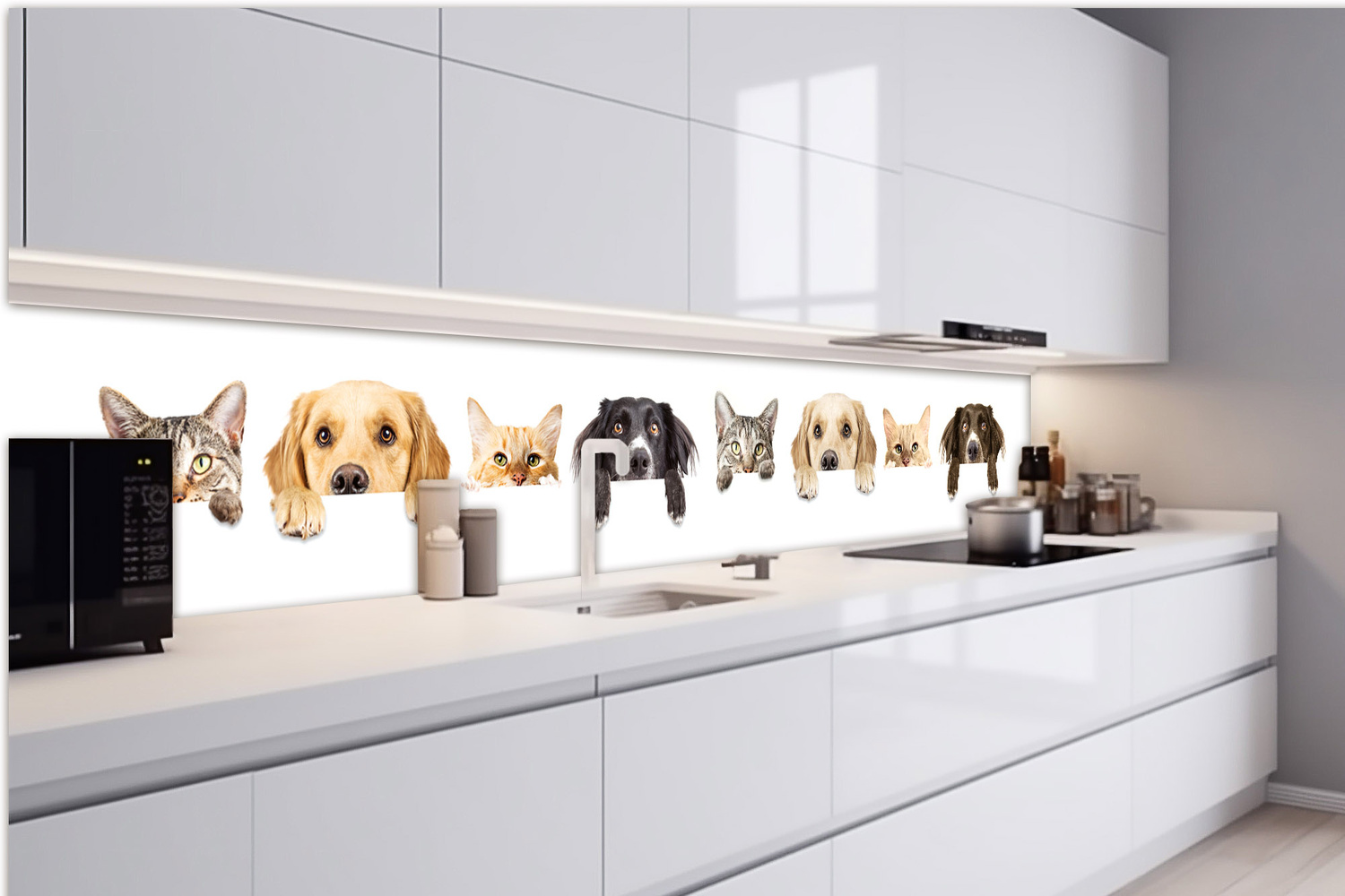 Konyhai fotótapéta - Macskák és kutyák 420 x 60 cm