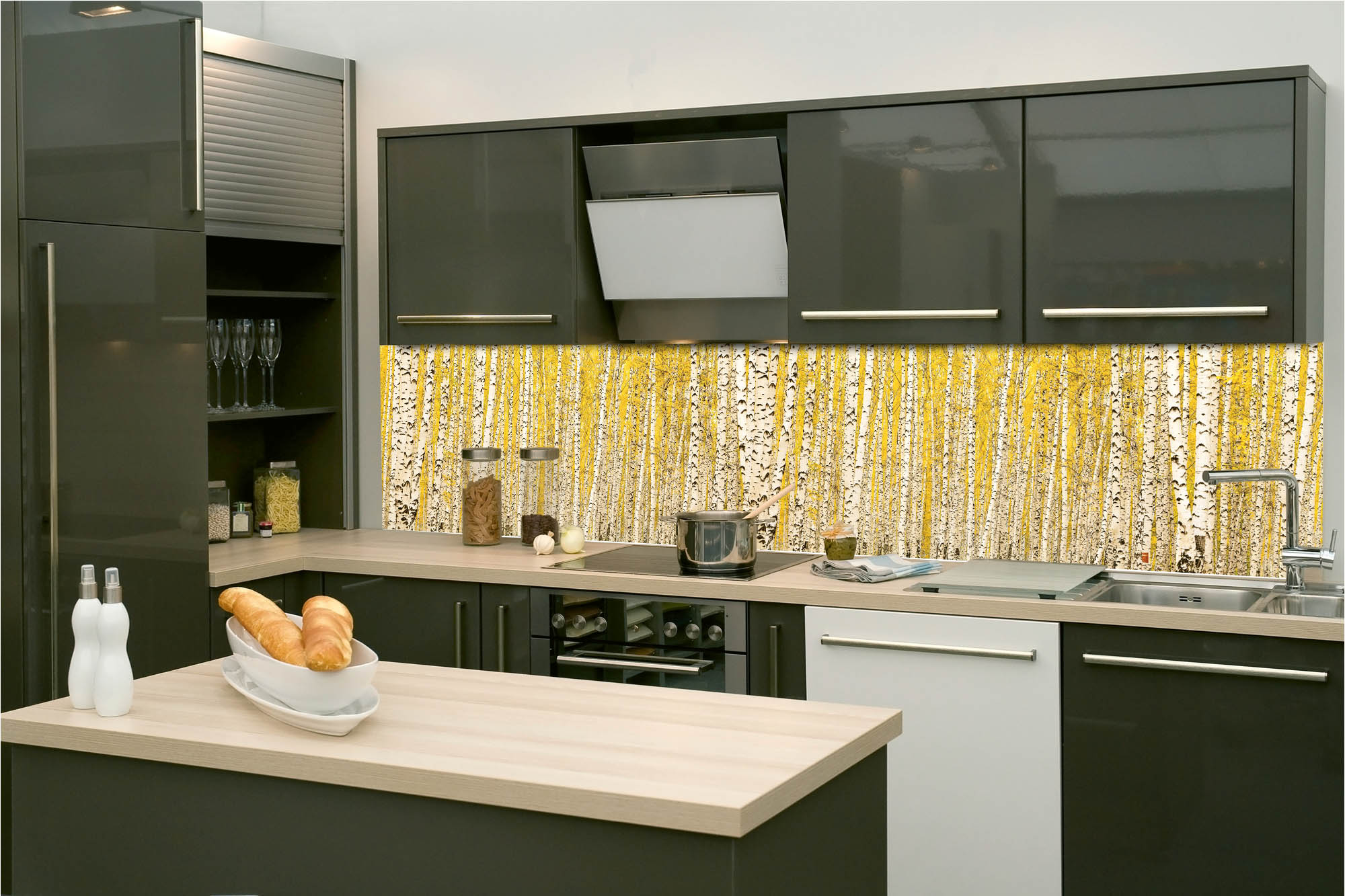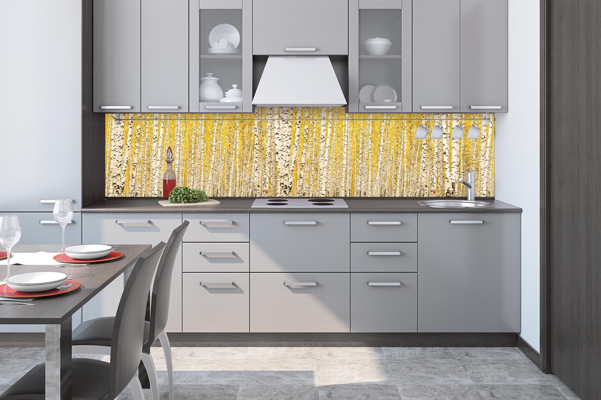 Konyhai fotótapéta - Sárga nyírfaliget 260 x 60 cm
