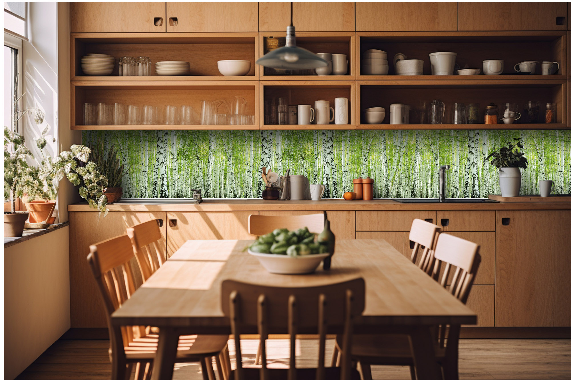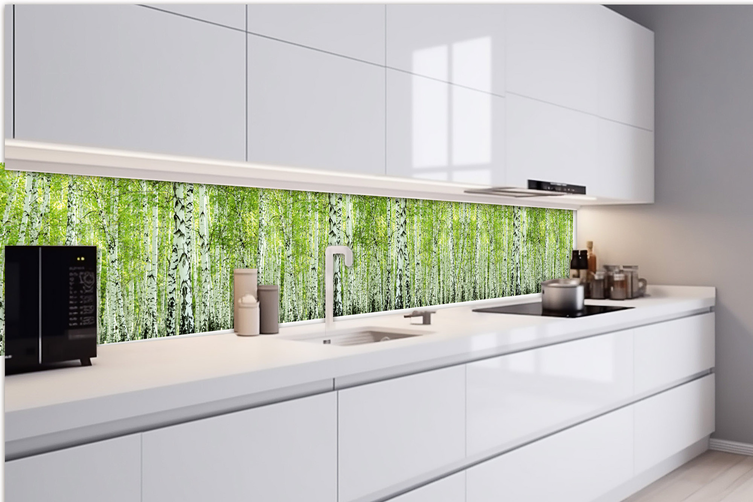 Konyhai fotótapéta - Tavaszi nyírfaliget 420 x 60 cm