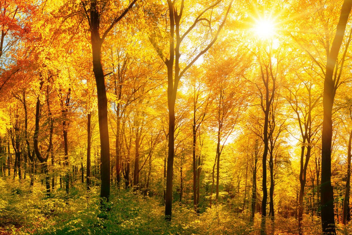 Dibond burkolólap Dimex konyhába Napos erdő - 60x40 cm