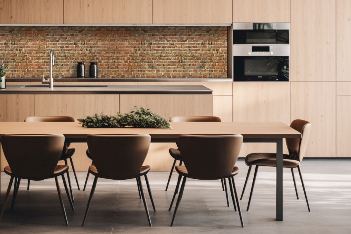 Dibond tábla a konyhapult mögött Egy fal vörös téglából - 260 x 60 cm