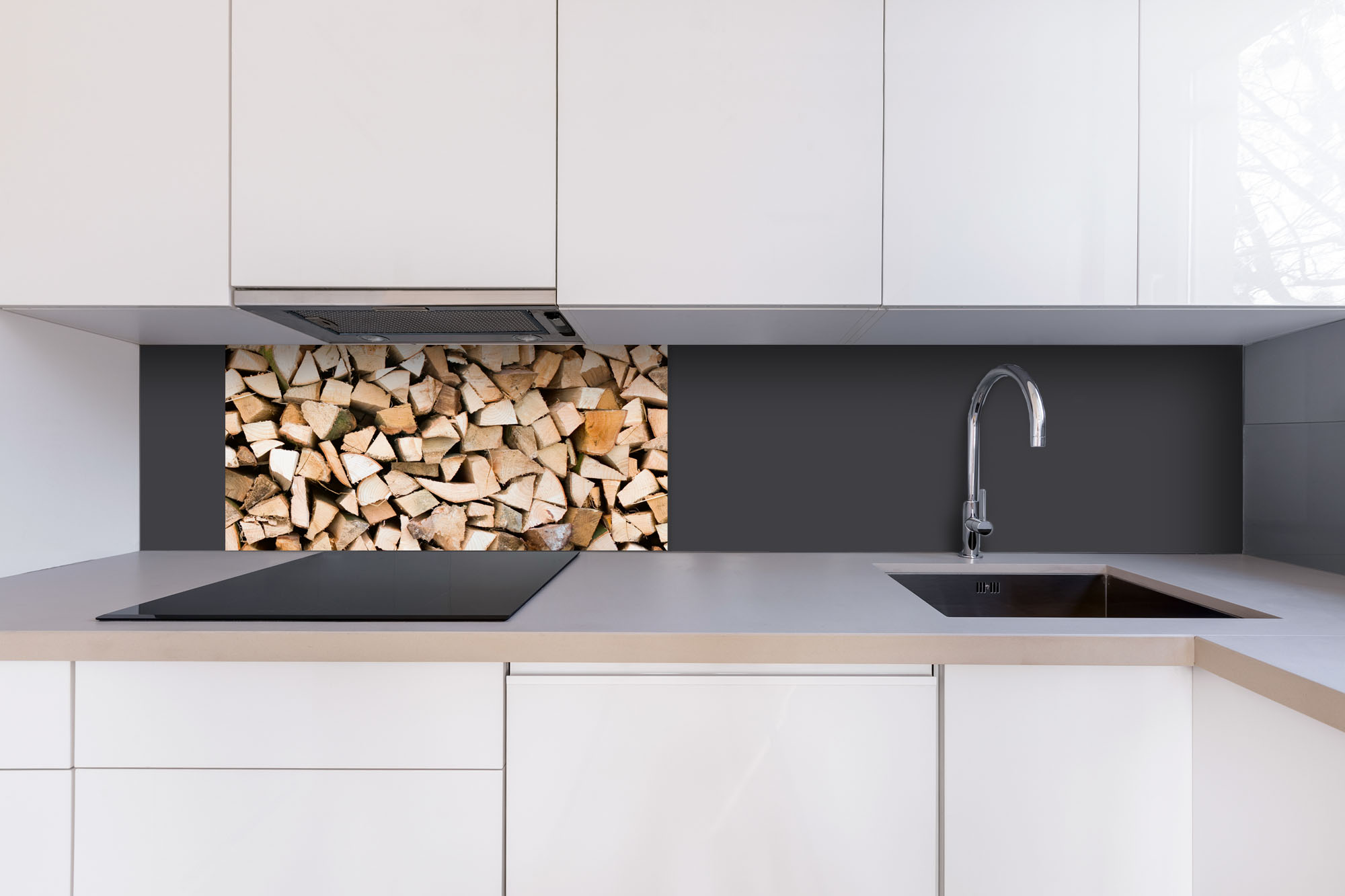 Dibond tábla a konyhapult mögött