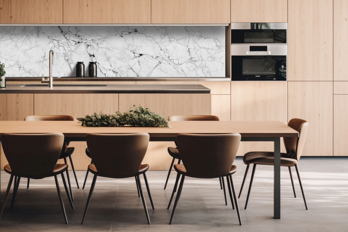 Dibond tábla a konyhapult mögött Fehér márvány - 260 x 60 cm