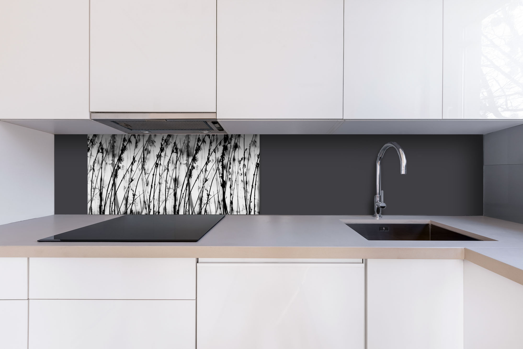 Dibond tábla a konyhapult mögött Fekete-fehér fű - 80 x 40 cm