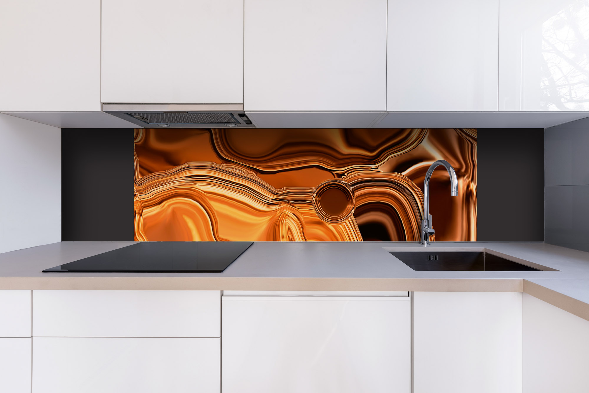 Dibond tábla a konyhapult mögött Folyékony króm bronz - 180 x 60 cm