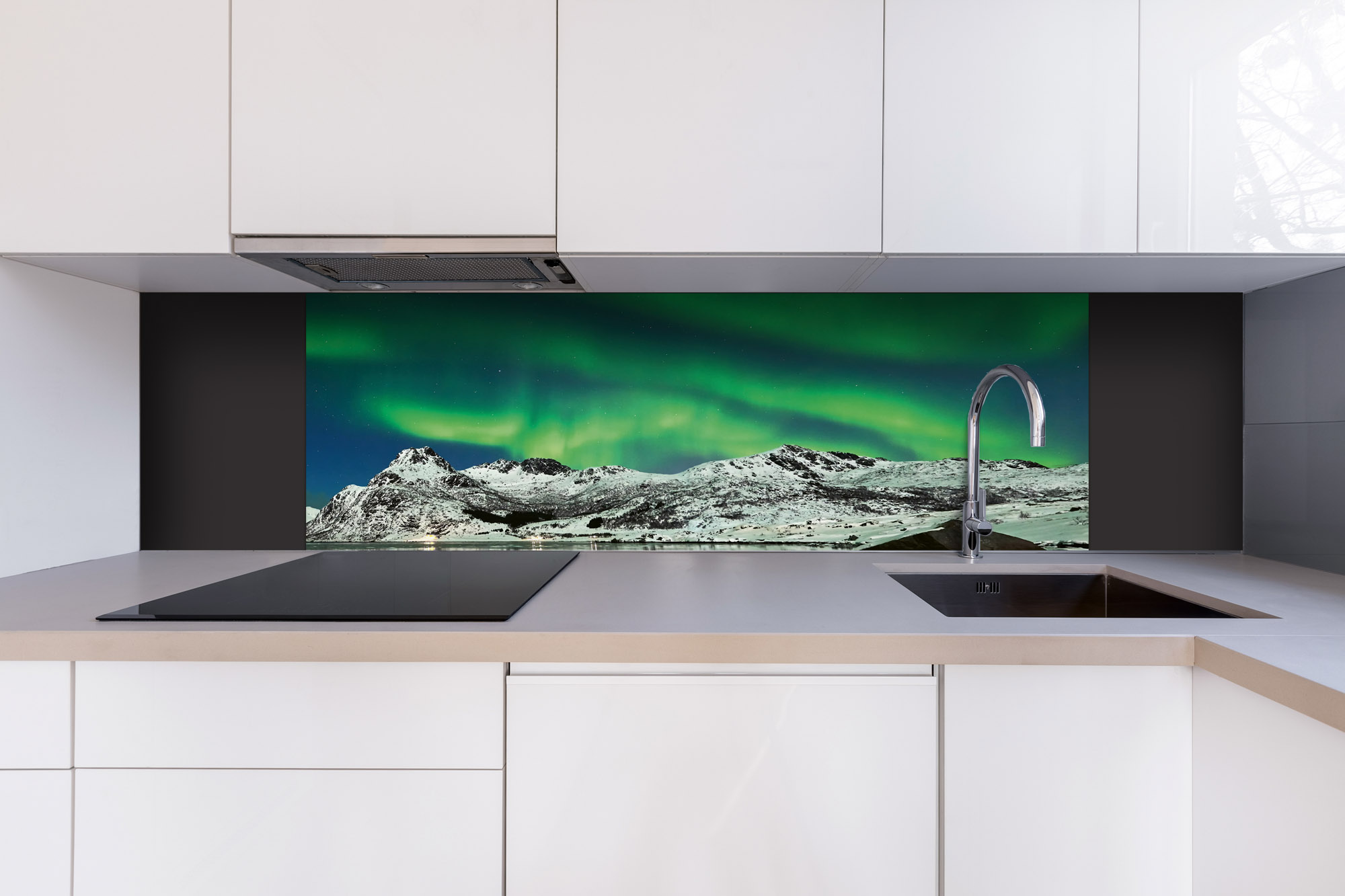 Dibond tábla a konyhapult mögött