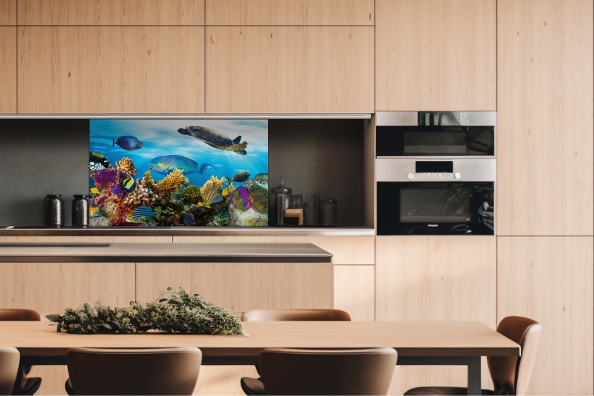 Dibond tábla a konyhapult mögött