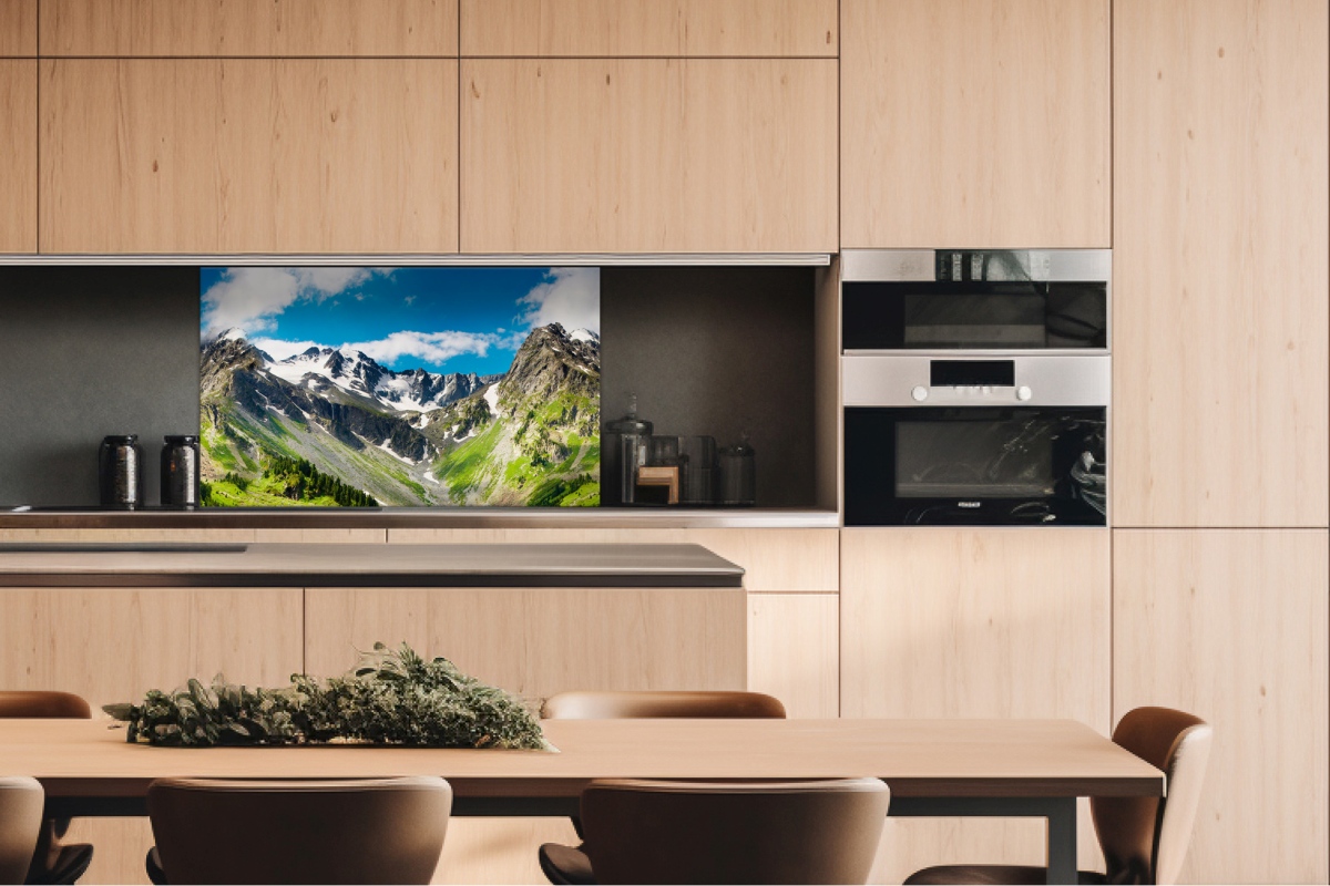 Dibond tábla a konyhapult mögött