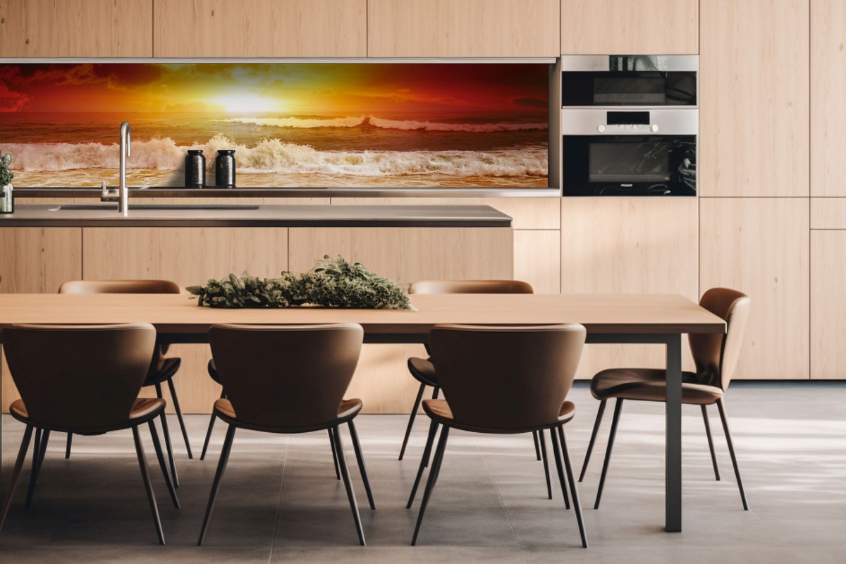 Dibond tábla a konyhapult mögött Hullámok a naplementében - 260 x 60 cm