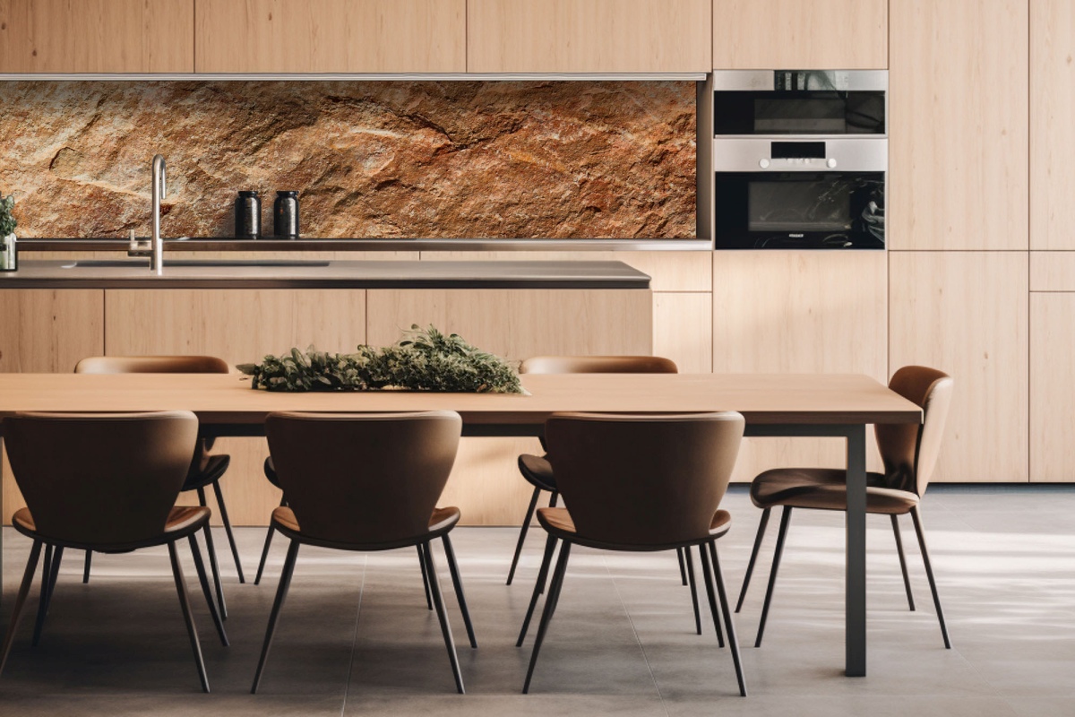 Dibond tábla a konyhapult mögött