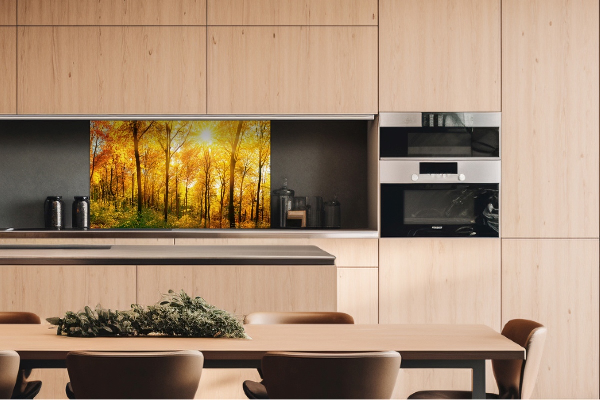 Dibond tábla a konyhapult mögött Napos erdő - 100 x 60 cm