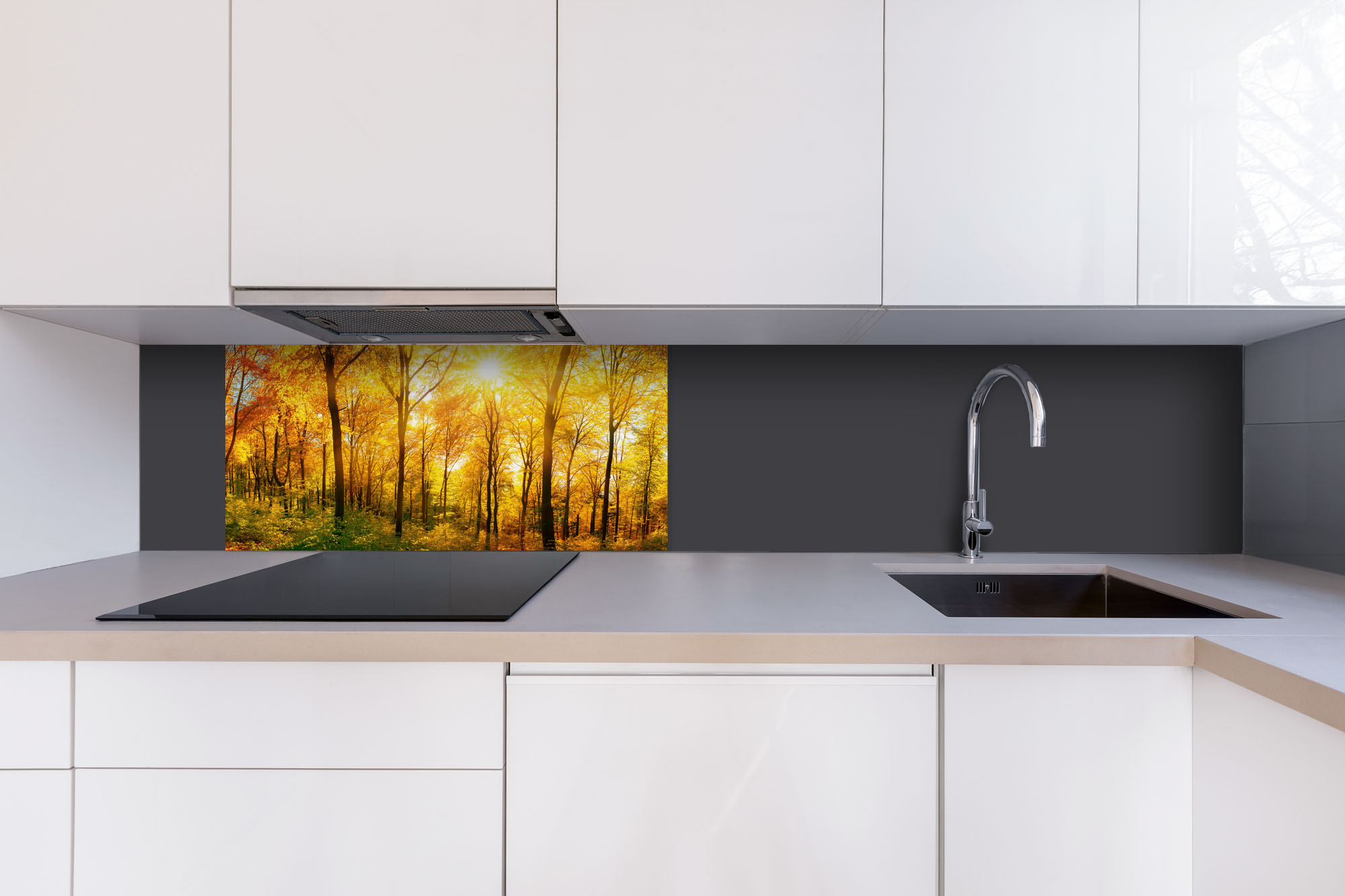 Dibond tábla a konyhapult mögött Napos erdő - 80 x 40 cm