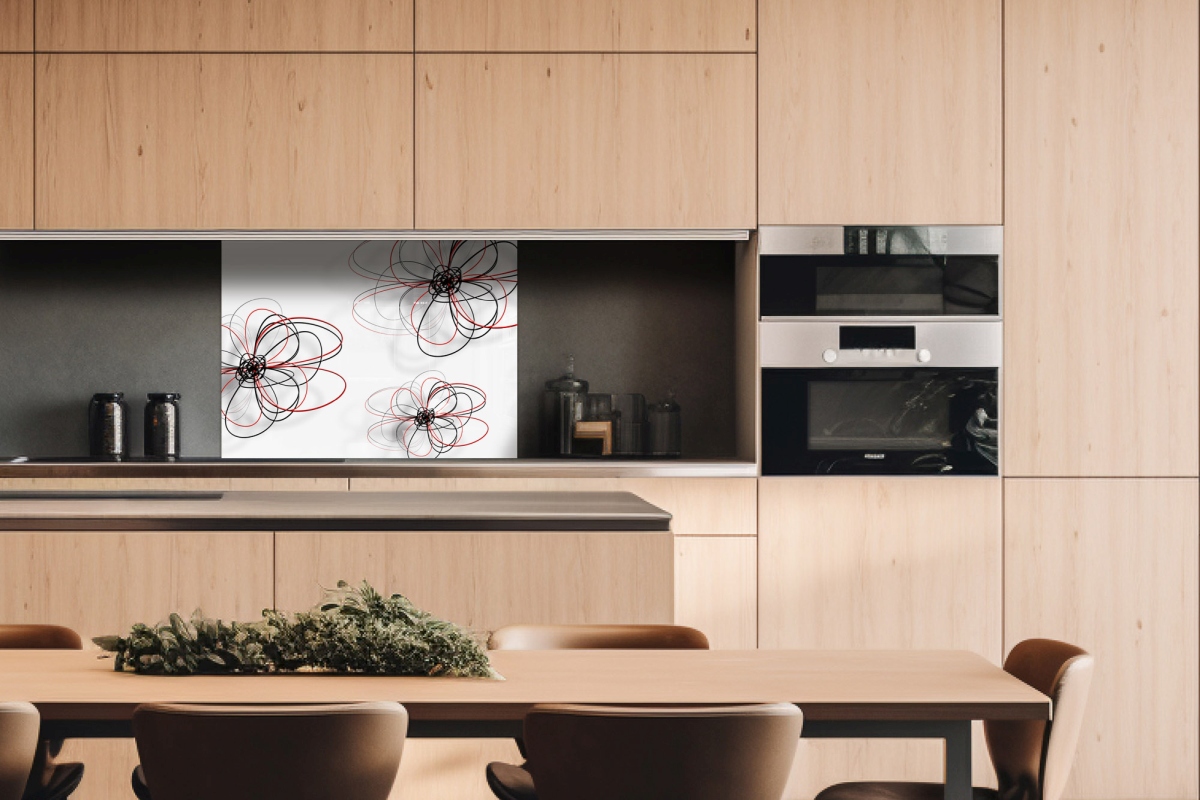 Plexi a konyhapult mögött Piros-fekete szirmok - 80 x 60 cm