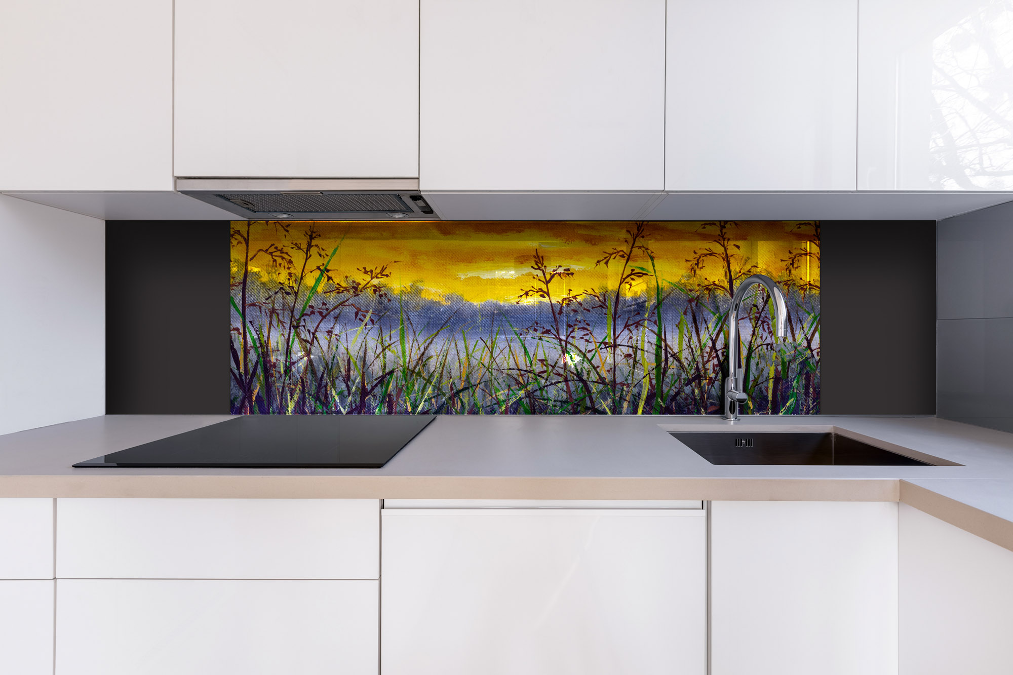 Plexi a konyhapult mögött Réti fű farmer festménye - 180 x 60 cm