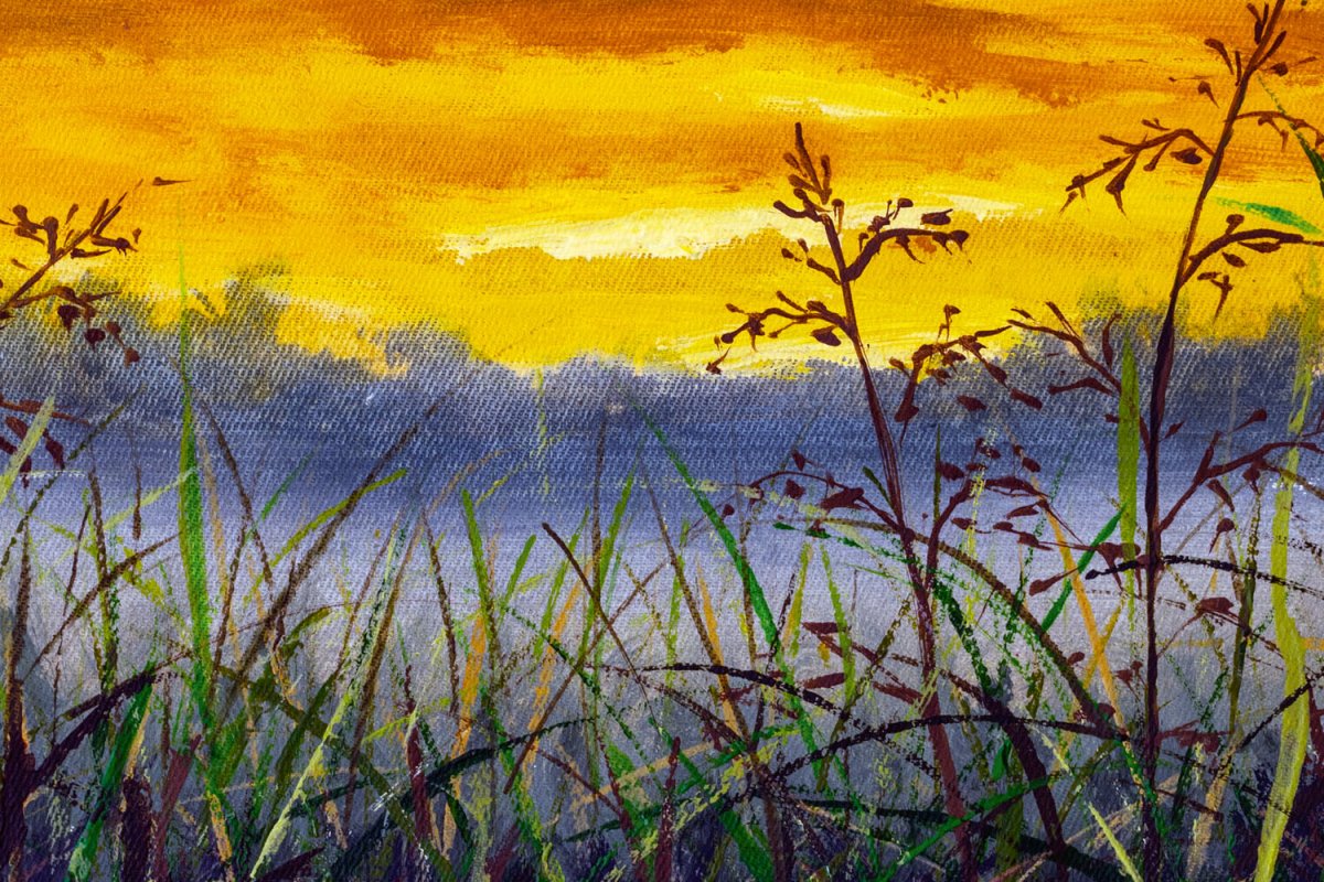 Plexi a konyhapult mögött Réti fű farmer festménye - 60 x 40 cm