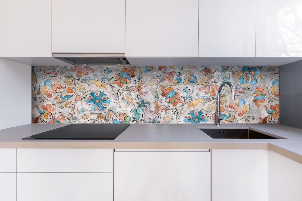 Plexi a konyhapult mögött Virágos olasz freskó - 240 x 60 cm