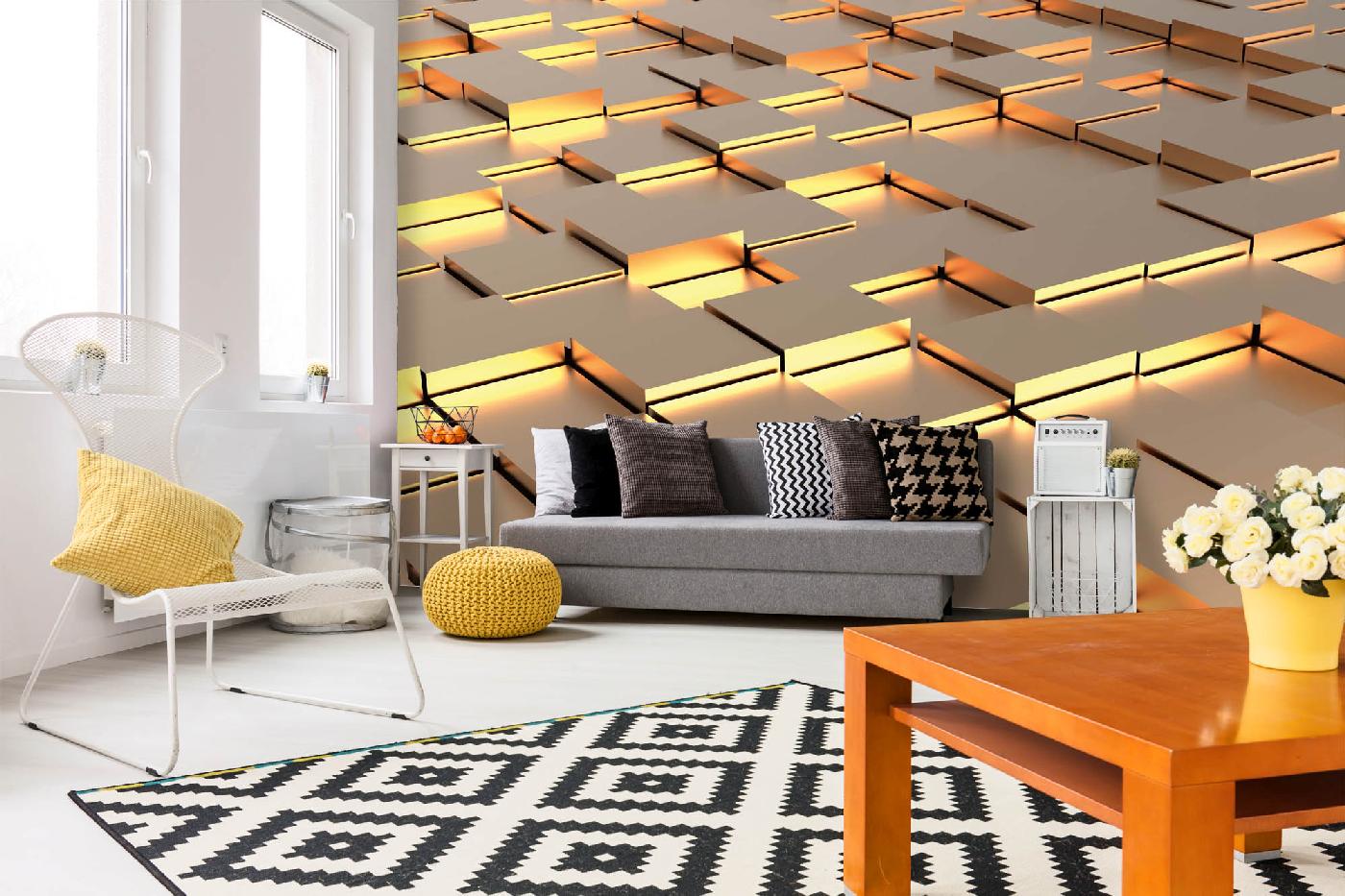 MS-5-2608 Nem szőtt fotótapéta Arany absztrakt kockák - 375 x 250 cm