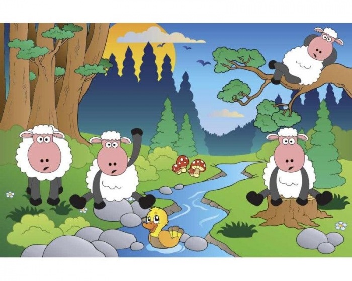 MS-5-0341 Nem szőtt fotótapéta Birkák az erdőben - 375 x 250 cm
