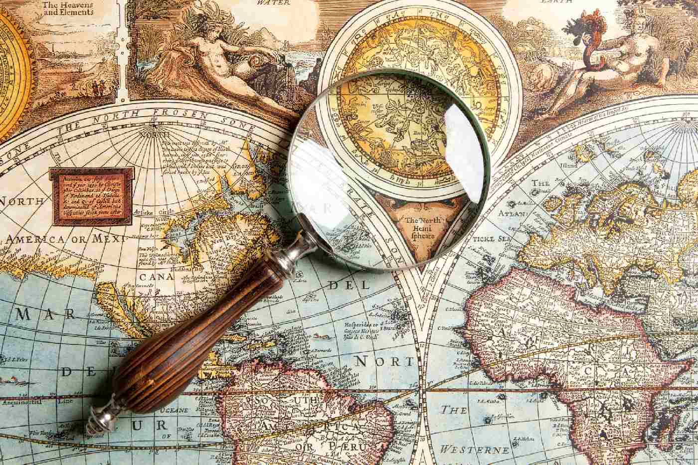 MS-5-1514 Nem szőtt fotótapéta Egy nagyító és egy régi térkép - 375 x 250 cm
