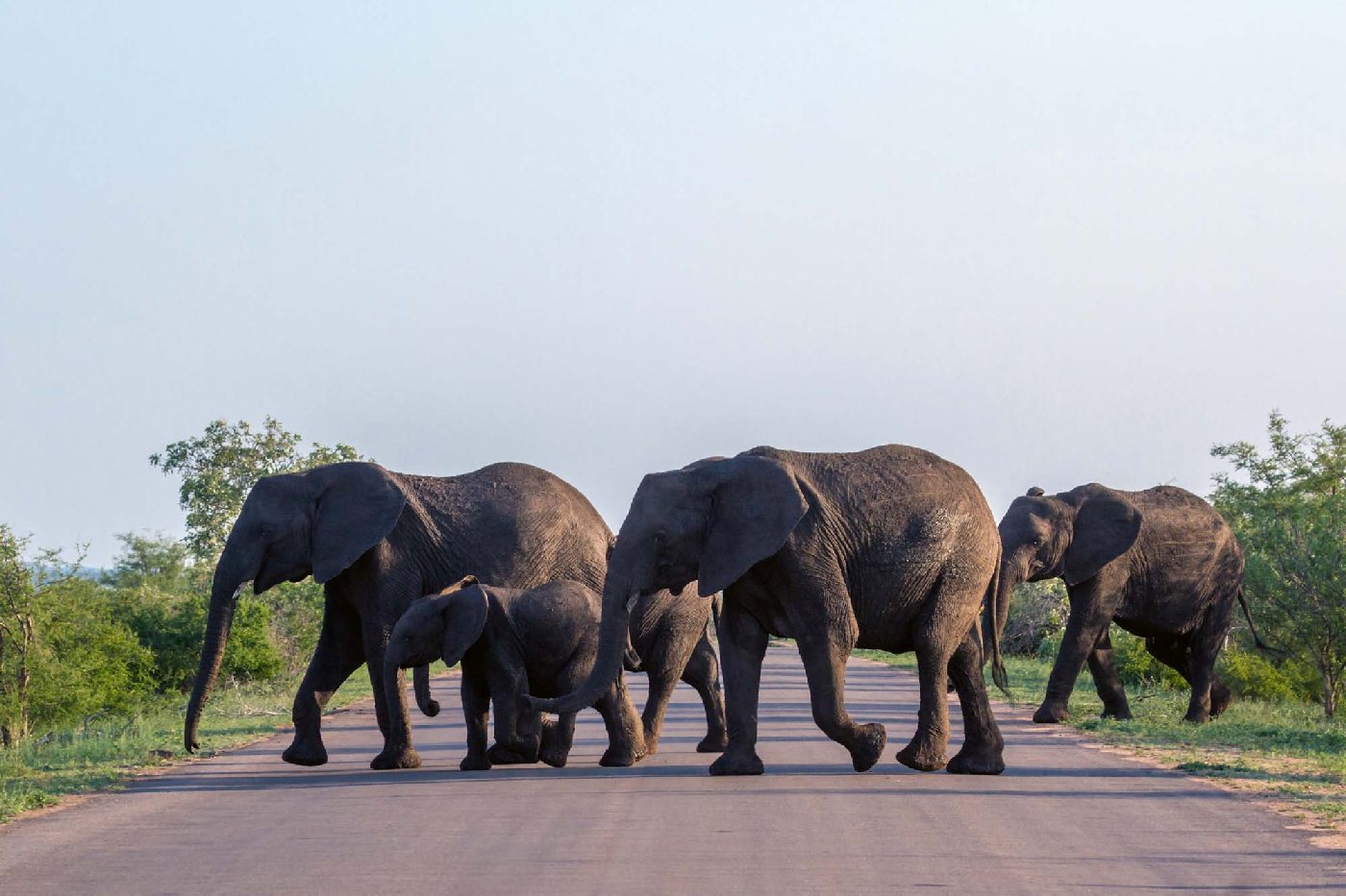 MS-5-0486 Nem szőtt fotótapéta Elefántok átkelés az úton - 375 x 250 cm