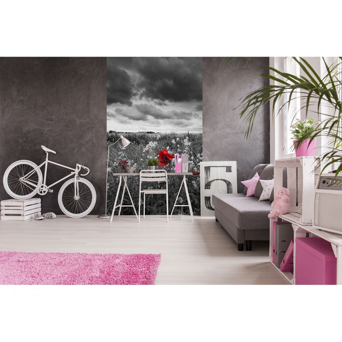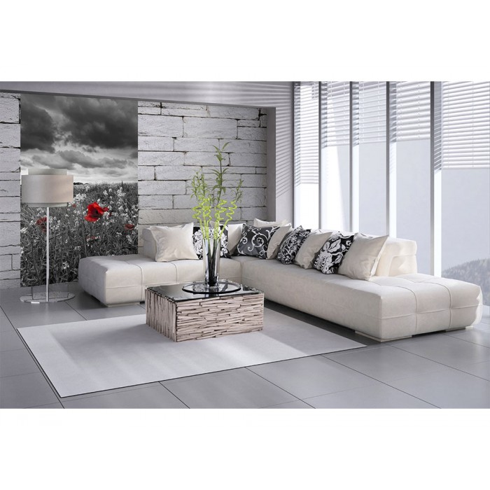 MS-2-0091 Nem szőtt fotótapéta Fekete-fehér mák - 150 x 250 cm