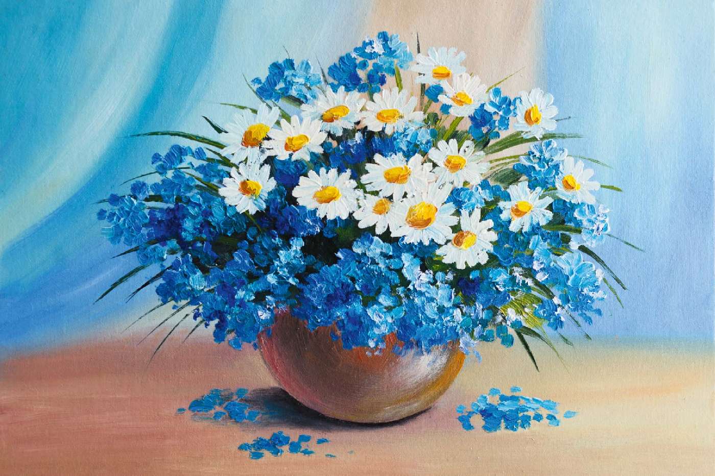 MS-5-1988 Nem szőtt fotótapéta Festmény - kék csokor - 375 x 250 cm