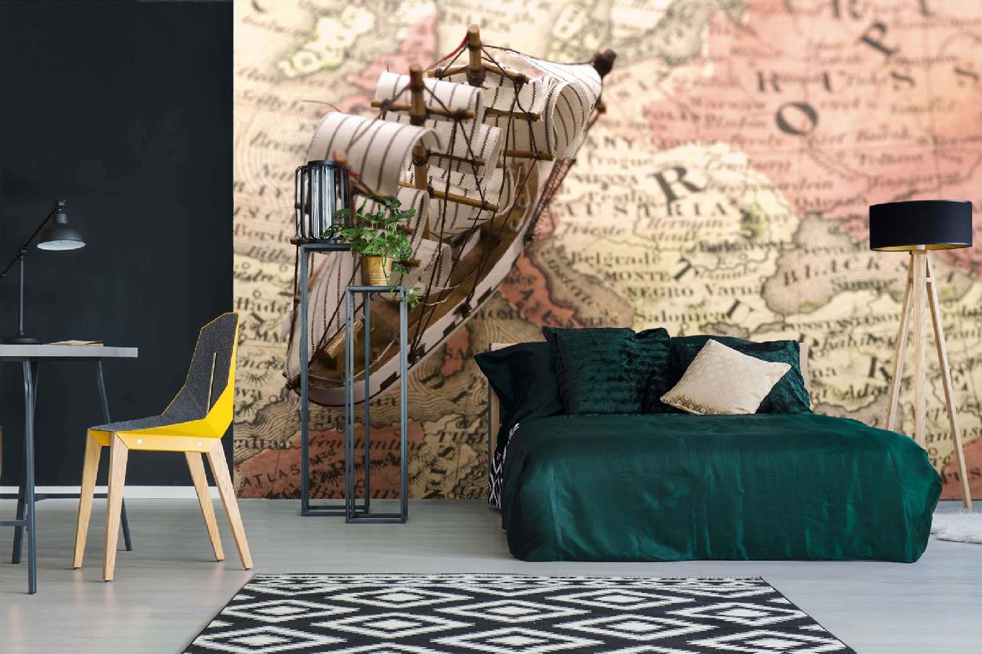 MS-5-1549 Nem szőtt fotótapéta Hajómodell a térképen - 375 x 250 cm
