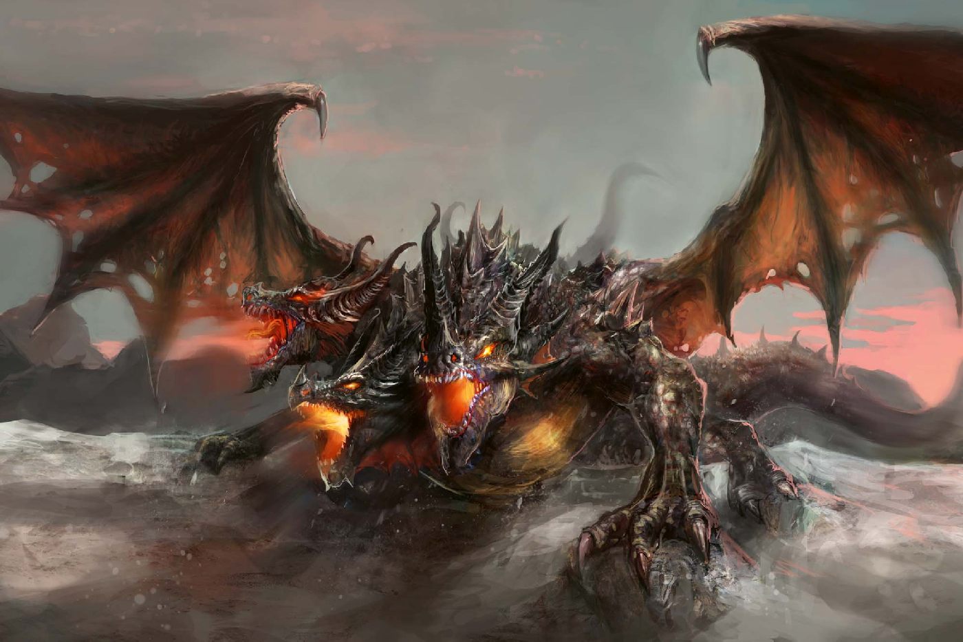 MS-5-1265 Nem szőtt fotótapéta Háromfejű sárkány - 375 x 250 cm