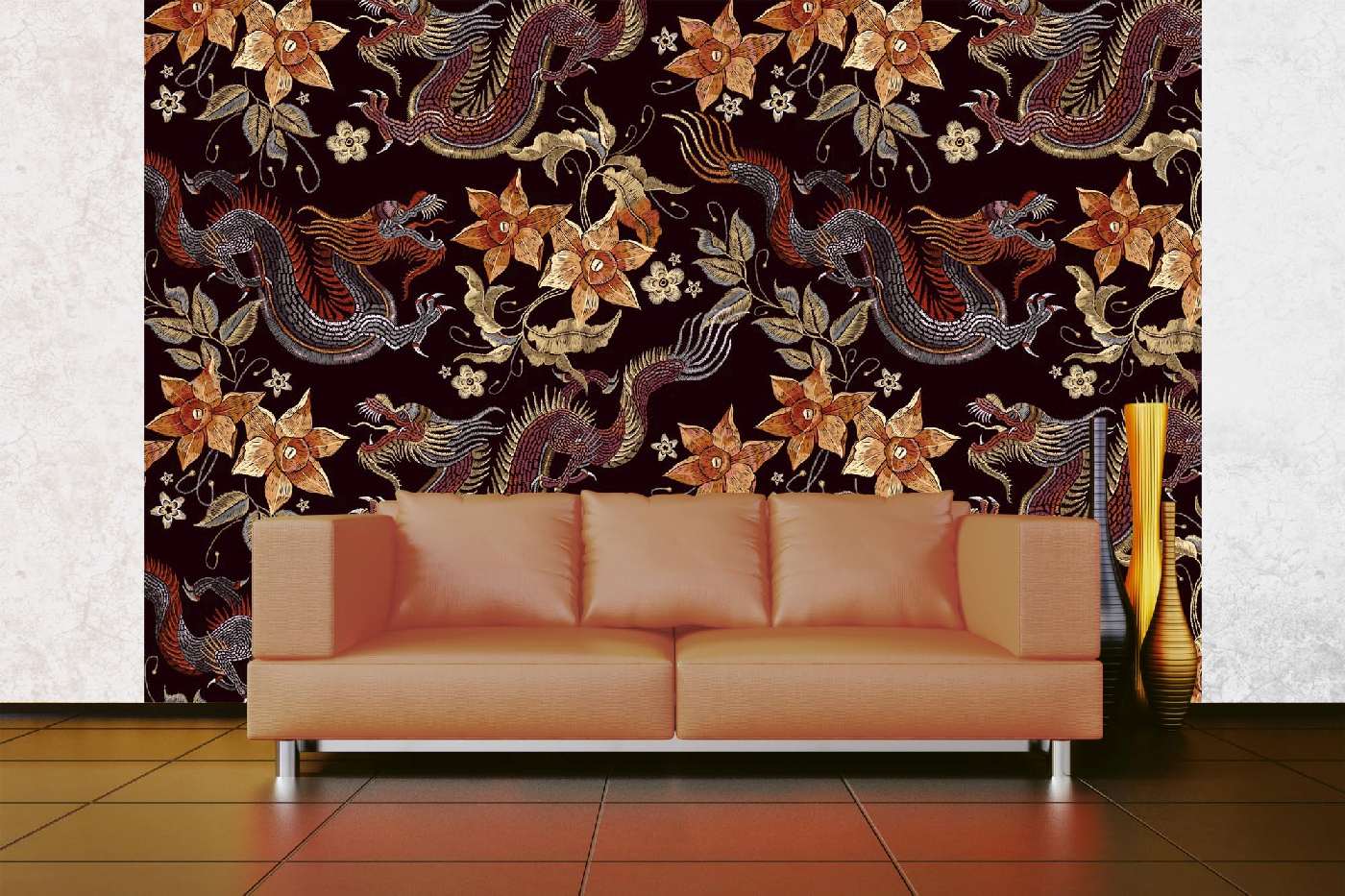 MS-5-2498 Nem szőtt fotótapéta Hímzett sárkányok - 375 x 250 cm