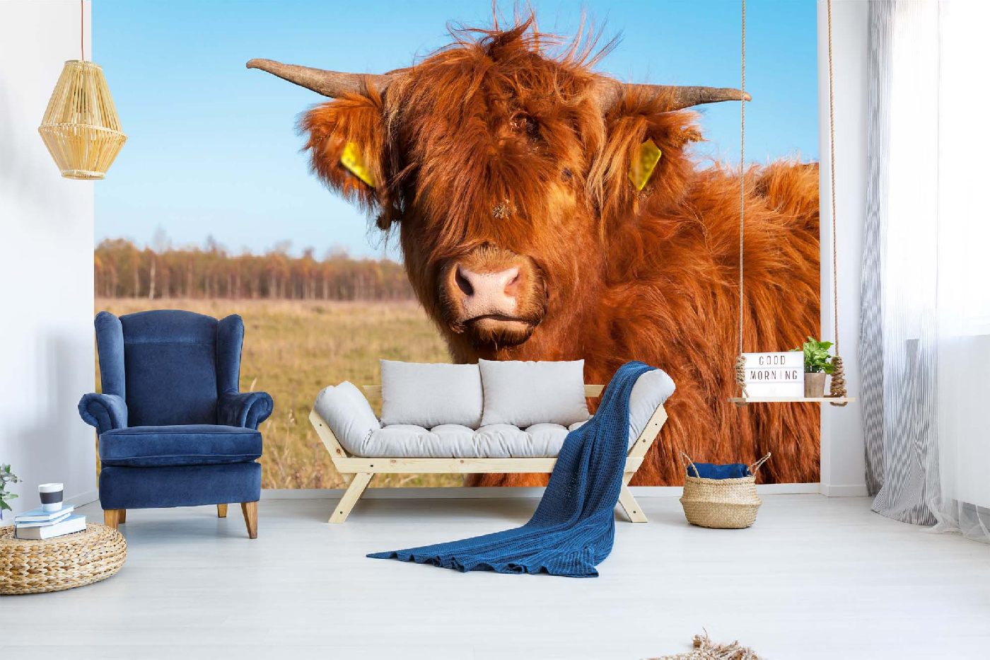 MS-5-0461 Nem szőtt fotótapéta Hosszú szőrű tehén - 375 x 250 cm