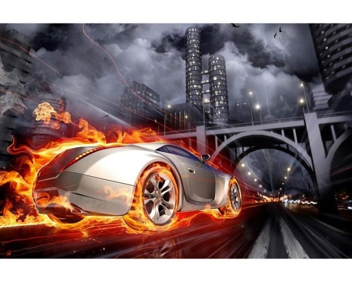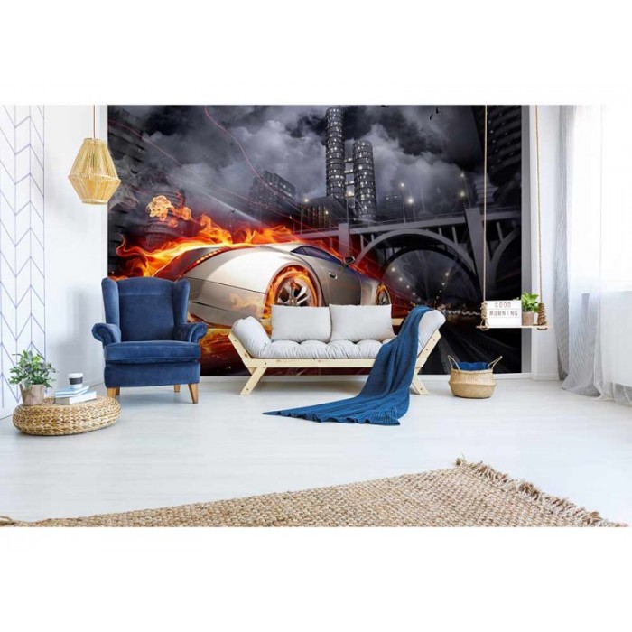 MS-5-0314 Nem szőtt fotótapéta Kigyulladt autó - 375 x 250 cm