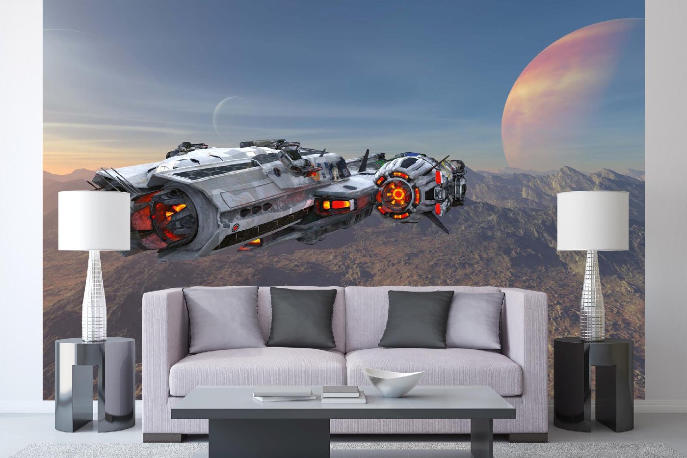MS-5-2258 Nem szőtt fotótapéta Űrhajó naplementekor - 375 x 250 cm