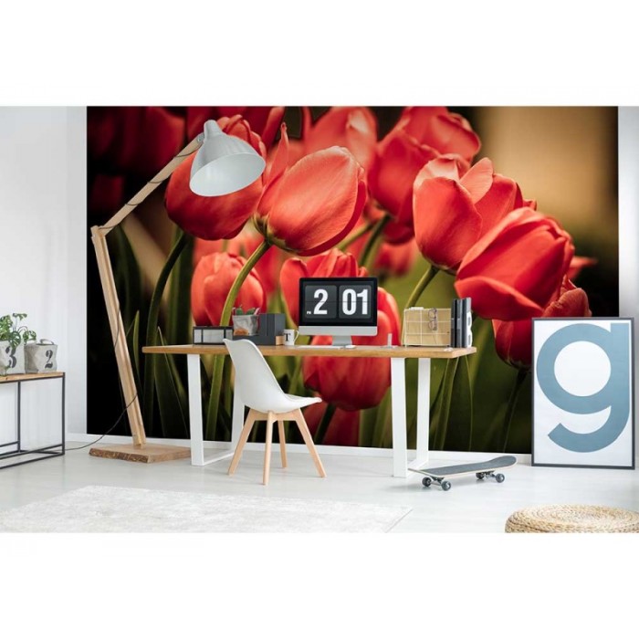 MS-5-0128 Nem szőtt fotótapéta Piros tulipánok - 375 x 250 cm