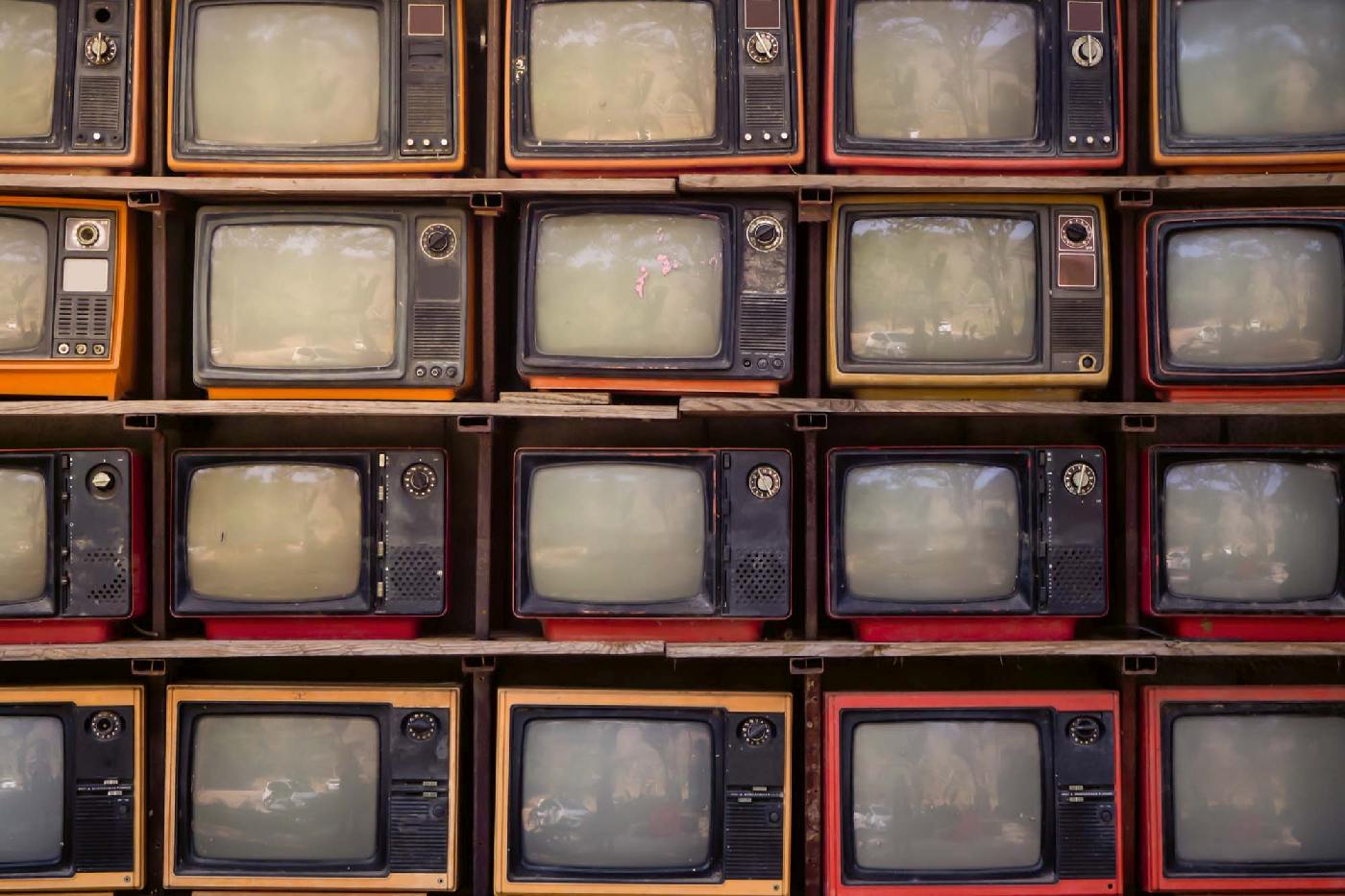 MS-5-2161 Nem szőtt fotótapéta Régi tévék fala - 375 x 250 cm