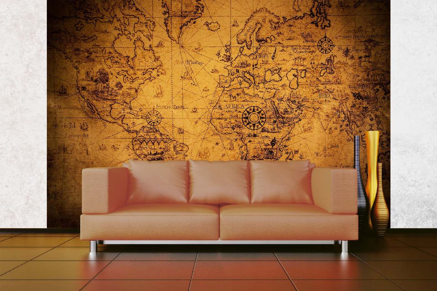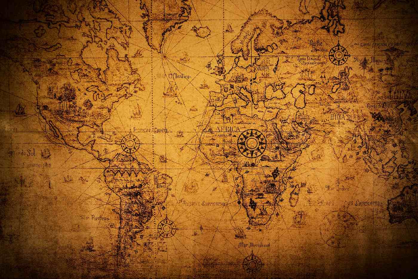 MS-5-1551 Nem szőtt fotótapéta Régi világtérkép - 375 x 250 cm