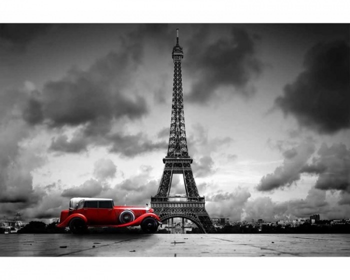 MS-5-0027 Nem szőtt fotótapéta Retro autó Párizsban - 375 x 250 cm