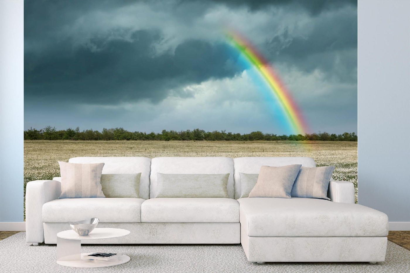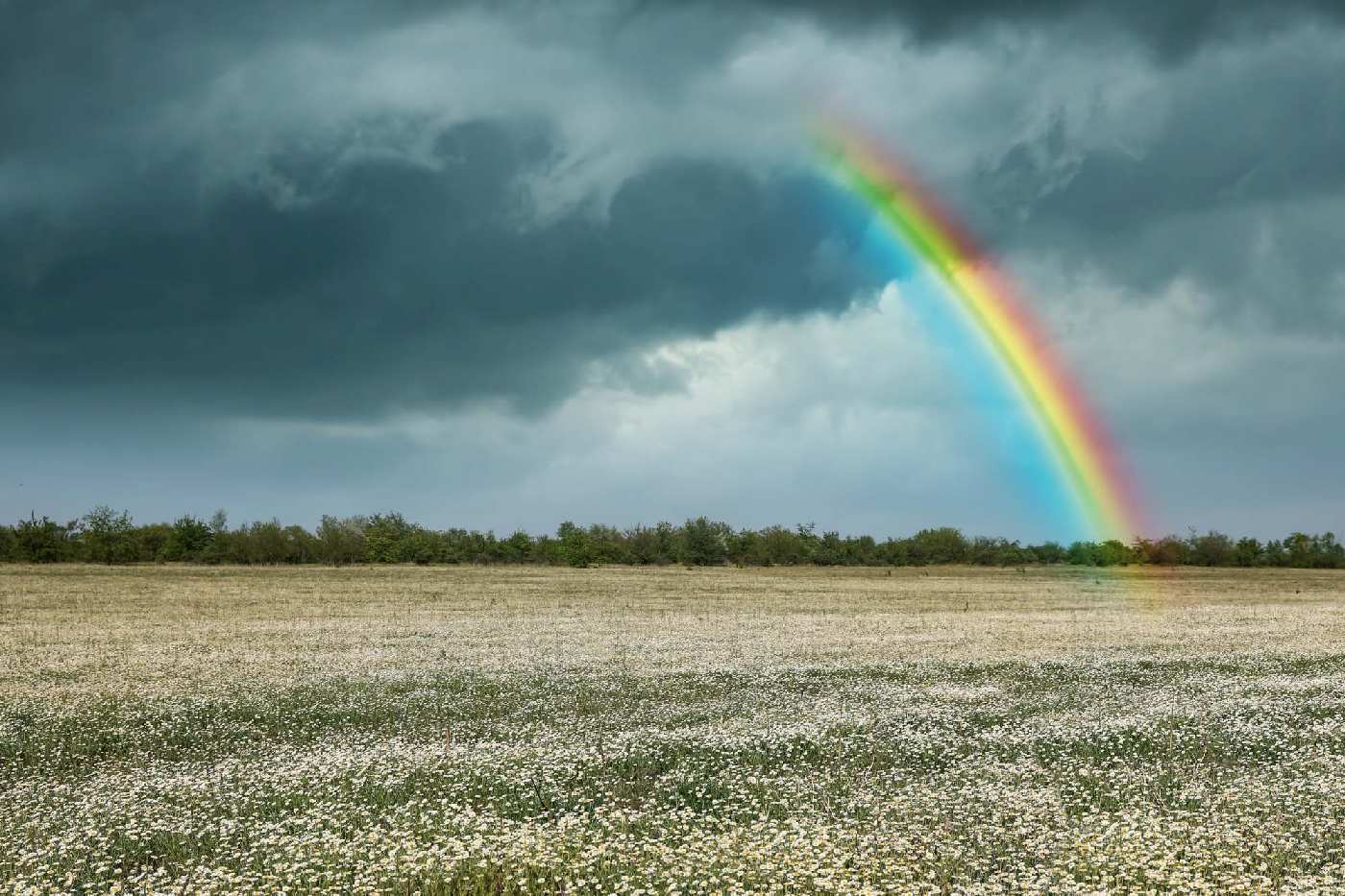 MS-5-1717 Nem szőtt fotótapéta Szivárvány a kamillamező felett - 375 x 250 cm