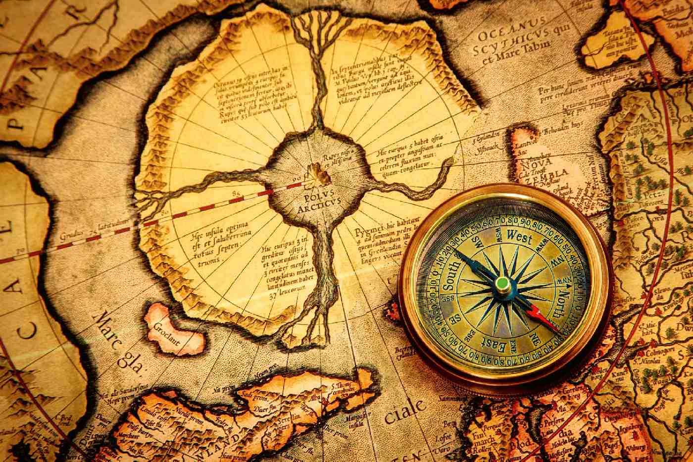MS-5-1553 Nem szőtt fotótapéta Vintage iránytű a térképen - 375 x 250 cm