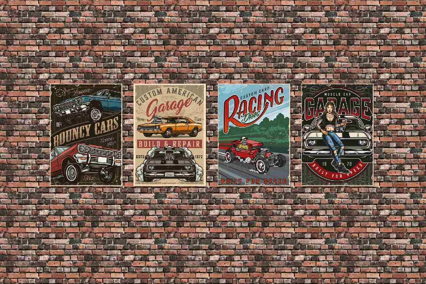 MS-5-2069 Nem szőtt fotótapéta Vintage plakátok - 375 x 250 cm