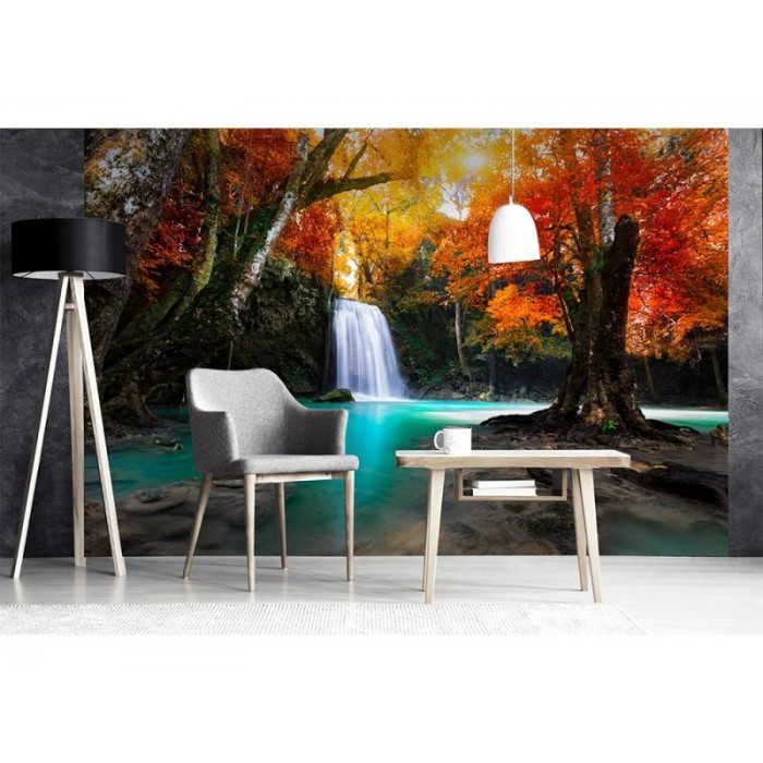 MS-5-0083 Nem szőtt fotótapéta Vízesés az erdő közepén - 375 x 250 cm