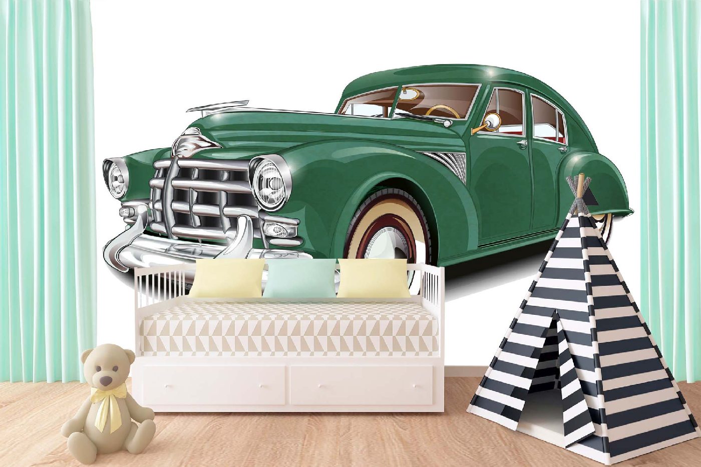 MS-5-2174 Nem szőtt fotótapéta Zöld retro autó - 375 x 250 cm